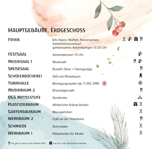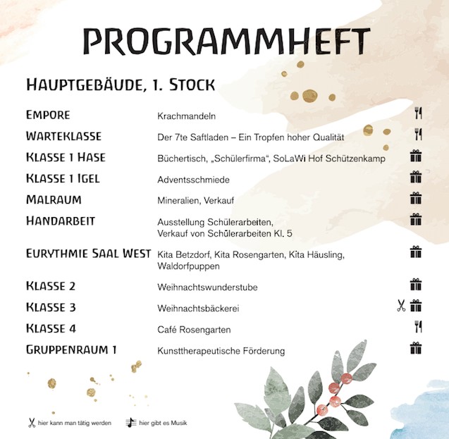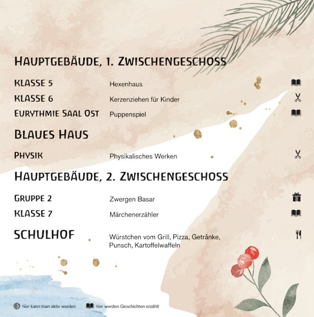 Die Eltern der Rudolf Steiner Schule Siegen laden herzlich zum Adventsbasar 2023 ein: am Samstag, 2. Dezember 2023, 10 bis 16 Uhr. Hier das Programm: