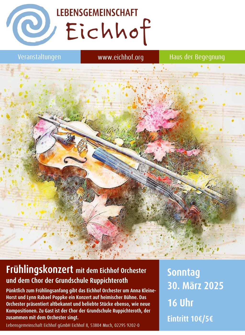 … am Sonntag, 30. März 2025, 16 Uhr, mit dem Eichhof Orchester und dem Chor der Grundschule Ruppichteroth. Eintritt 10€/5€. Siehe www.eichhof.org.